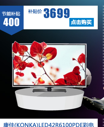 - 康佳(KONKA)LED50R5100DE彩电购买后再享受国家节能补贴400元!50英寸3D网络电视,超窄边框,超薄机身,2D、3D轻松转换,BBTV百视通,高档烫印工艺,低调华丽。