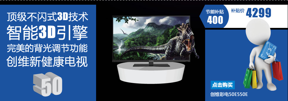 - 创维(skyworth)55E750A彩电购买后再享受国家节能补贴400元!顶级不闪式3D技术,智能3D引擎,完美的背光调节功能,创维新健康电视!