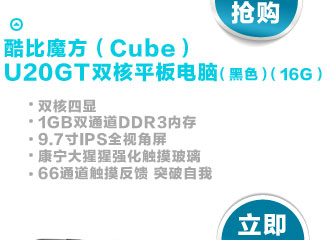- 酷比魔方(Cube)U9GT2 MID平板电脑(银色)(8G)最强店庆月 4月18日-4月19日 时尚数码 订单满2999返100元红券,满4999返200元红券
