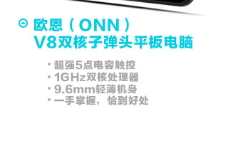 - 欧恩(ONN)M3双核霸道平板电脑(16G)最强店庆月 4月18日-4月19日 时尚数码 订单满2999返100元红券,满4999返200元红券