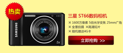 - 三星(SAMSUNG)ST66数码相机(黑色)全景拍摄 高清短片拍摄 F2.5大光圈 24mm广角 还缺什么?银色独享全网最低!!!