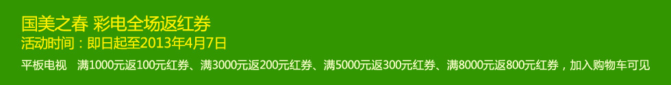 - 三洋(SANYO)32CE660LED彩电即日起至4月7日,平板电视满千元即返红券,最高返800元,加入购物车可见!