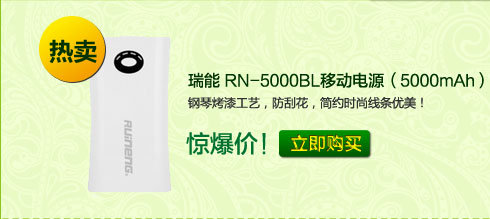 - 瑞能(RUINENG)RN-5000BL移动电源(白色)(5000mAh)五月手机配件“装饰节”盛大开幕!全场惊爆,清仓配件2折起售!