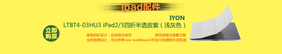 - IYON LTBT4-03HU3 iPad2/3四折半透皮套(浅灰色)特制面料,手感特别的舒适细腻,颜色鲜活,与超薄PC后背保护壳一体结合,携带和使用更加方便,给你的机器全方位的保护