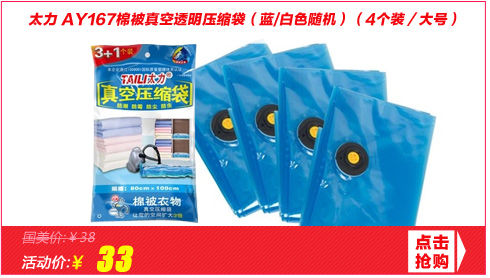 - 太力(TAILI)AY172卷压式衣物真空透明压缩袋(蓝/白色随机)(3个装)
