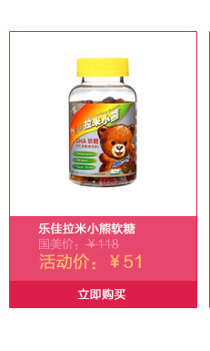 - 乐佳拉米小熊软糖木莓口味180克(90粒*2克)/瓶国美母婴呵护健康