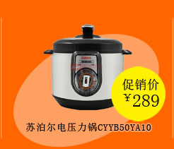 - 苏泊尔(SUPOR)YL249HB2磁通好帮手压力锅5月15日14:00——5月17日11:59 家居品类订单满100立减20,满200立减50,满300立减80,加入购物车可见!