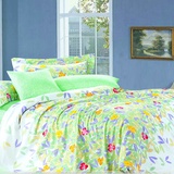 樱之物语淡雅怡人高支高密纯棉斜纹印花四件套(绿)(200*230cm)