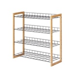 好事达680-1-3043四层实木框鞋架(黑色+原木色)