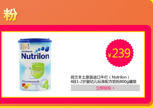 Nutrilon荷兰本土牛栏标准型5段奶粉(2-6岁)800g【7月25日-28日百货全场送现金】,母婴品类订单金额满100送30现金券,满300送100现金券,连续四天倾情让利!