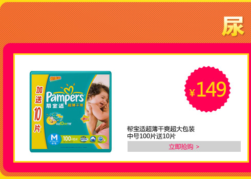 帮宝适超薄干爽超大包装加大号68片送8片【7月25日-28日百货全场送现金】,母婴品类订单金额满100送30现金券,满300送100现金券,连续四天倾情让利!