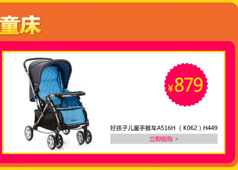 好孩子儿童手推车A516H (K062)H449【7月25日-28日百货全场送现金】,母婴品类订单金额满100送30现金券,满300送100现金券,连续四天倾情让利!