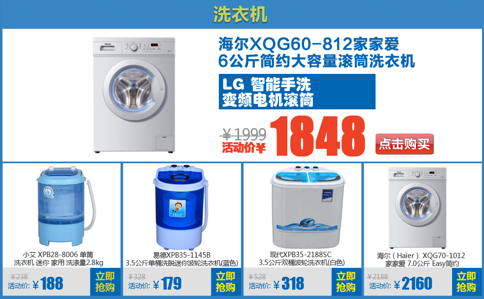 海尔(Haier)XQS60-Z1218S 至爱/6kg/自编程/风干/双动力洗