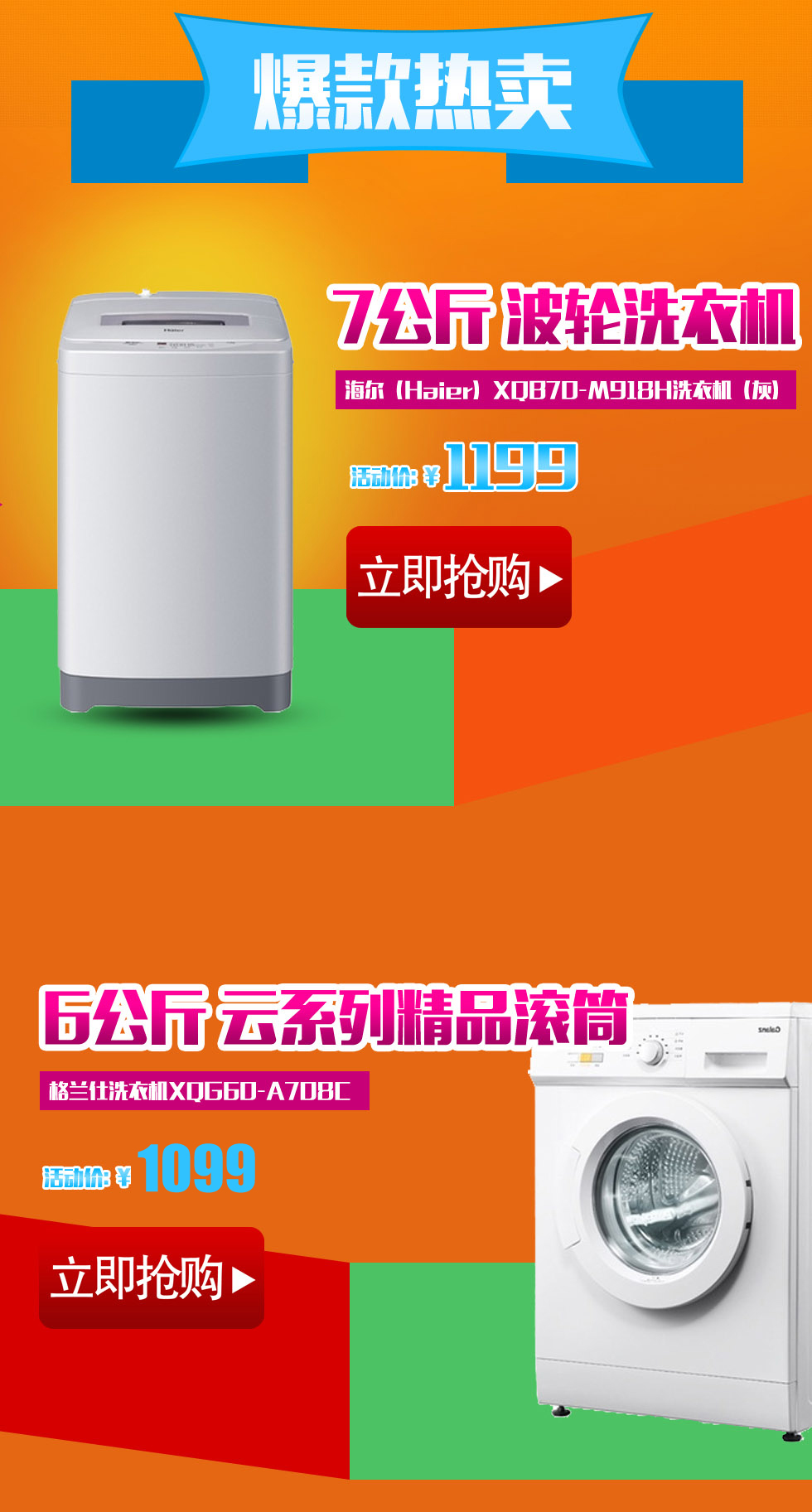 海尔(Haier) XQG70-1011 7公斤 节能滚筒洗衣机(银灰) 强力去污,额外漂洗!【7.30-8.2日冰洗潮流家电趴】限时抢购,全场7折起; [直降4000封顶,立即抢] 7公斤 节能滚筒洗衣机,29分钟快洗,额外漂洗,多一次漂洗才格外干净,防皱浸泡,让衣服就像亲手搓洗般洁净!15分钟快速洗,让您美丽新衣天天换!!!!