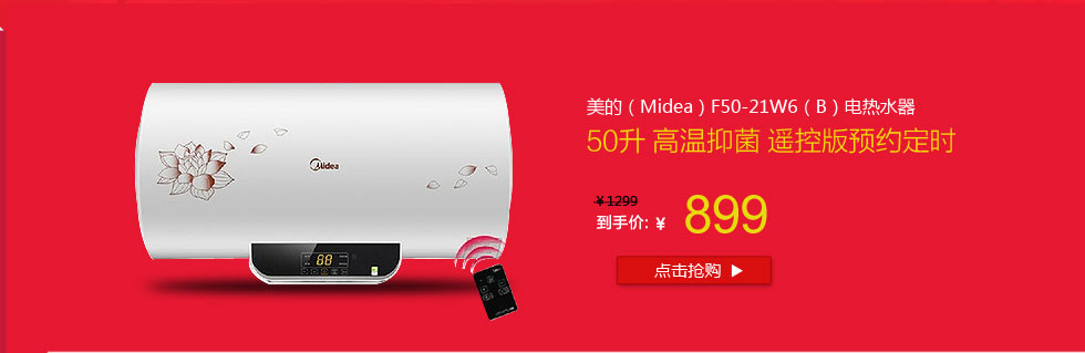 美的(Midea)F60-21WB1(遥控)电热水器(60升 防电墙 无线遥控操作 一级能效 预约定时)【厨油烟卫幸福】 爆款烟灶卫浴裸价钜惠,优惠多多;欲购从速!!! 【点击进入,优惠更多】 [美的369元小厨宝正在疯抢中!] 【点击抢购369元美的小厨宝,热销爆款支持货到付款!】